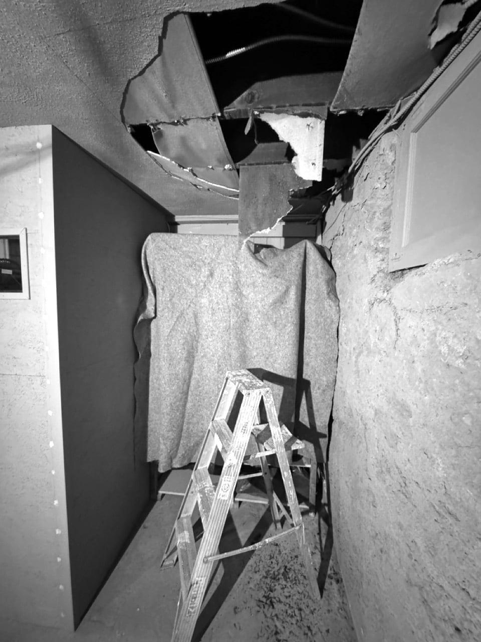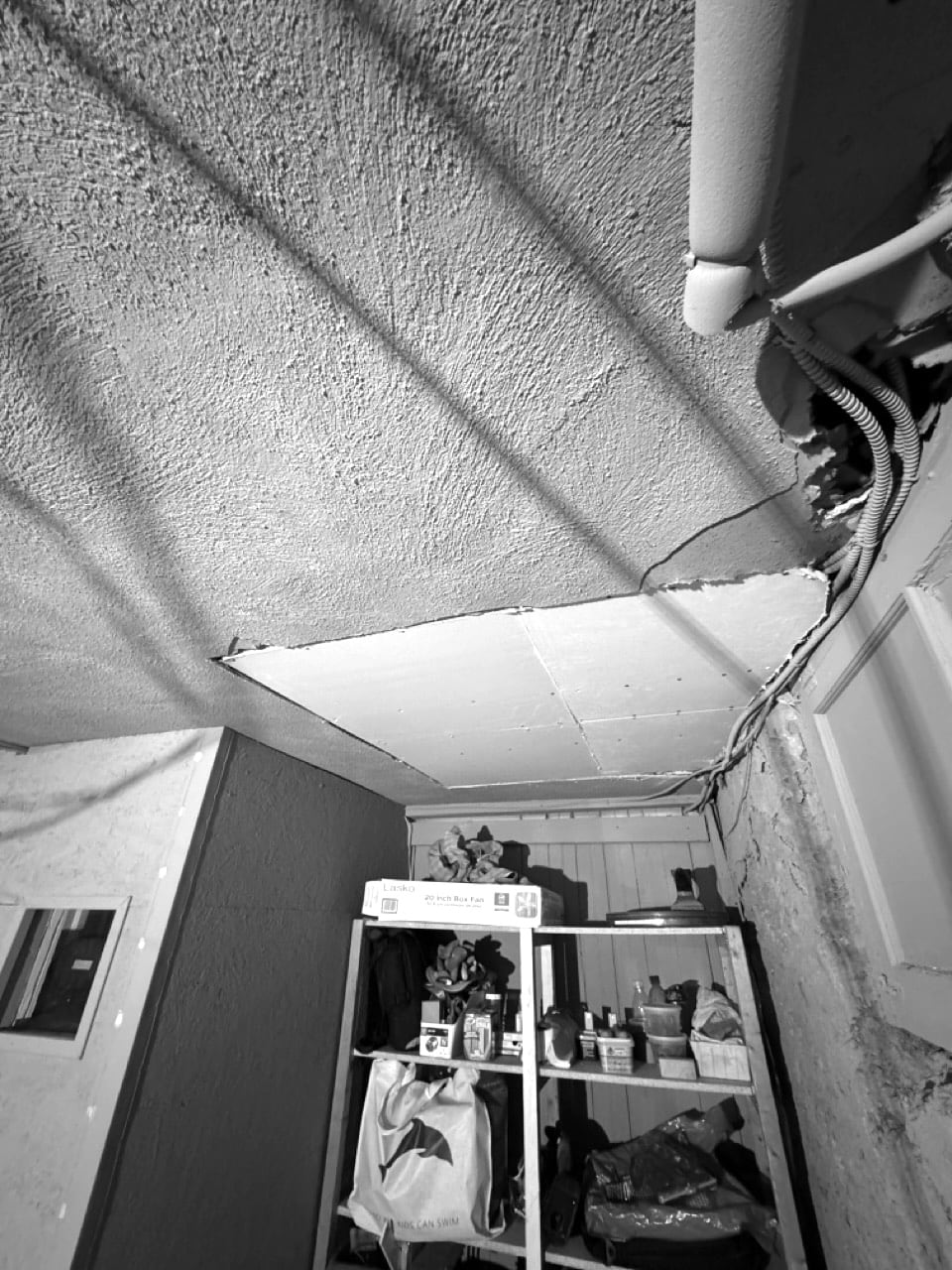 Art not Nouveau cellingTime to get that thing……patchedModel Train plaster againPopcorn paint mixtureand Tadada! (not great but will suffice!)Monster Vacuum ready to…vacuum the floor……for a failed paint attempt…stinky like hell and too brightBut great undercoat for another…unexpected patching